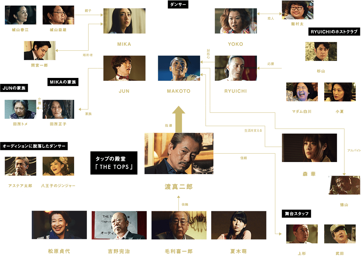 初監督作となる本作では、主演も兼ねて、作品を牽引する。水谷が演じるのは、栄光も挫折も嘗めつくしたカリスマ舞台人・渡真二郎。トップダンサーを夢見る現代の若者たちを、時にシビアなレッスンで鍛え、時には慈しみ見守りながら、極みへと引き上げていく。男の色気を纏った、ハードボイルドな主人公だ。