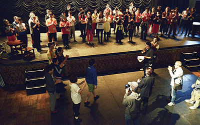 - 監督の言葉と台本の文字から、具体的な映像のイメージを作り上げていくのが、撮影監督の仕事。そういう意味では、監督の表現力が素晴らしかったので、最後のステージも含めて、やるべきことも多かったけど、大きな充実感がありました。今回は直感的に、現場で起きている現象を見守るような、優しい目線にしたくて、ゆったりしたフレームに。シネスコにしたのは、圧巻のステージをあたかも舞台のように見せたかったから。ショウが始まる前のロビーのシーンは、普通なら点描で描くところを、一気に見せたいという監督の思いを、スタッフ、キャスト全員で実現させよう、と。カメラがスイングするような、長回しのワクワクカメラワークになりました(笑)。