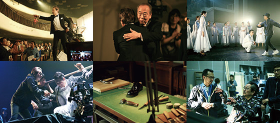 - 「THE TOPS」の舞台となる、東京キネマ倶楽部初日。渡が、若手ダンサーたちにショウビジネス界の残酷さを徹底的に突きつける、オーディションの撮影が行われた。「芝居のプロではないダンサーにとって、オーディションから順撮りで始めることはとてもいい。ただ初日と言えども、この映画の世界観を決めるシーンだから手を抜くわけにはいかない。僕にとっては、この日が初日の感覚でした」(監督)。厳しい表情をした渡の登場で、50人のダンサーがひしめくオーディション会場に重圧感が広がる。ステッキが折れるほど激しい渡の要求にもがくも、脱落者が続出。撮影に立ち合うHIDEBOHやダンサーたちに、実際のオーディションの様子を確認しながら、リアルな描写を重ねていく。「短いシーンの中で、ダンサーたちがどんどん脱落していく様子を、ステップ、足元、手のカットで積み重ねて、時間を刻んでいかなきゃいけないねって。前日に監督と具体的なカット割の打ち合わせをしたら、どうしても140カット必要だった。この撮影を乗り切れたことは、スタッフにとっても大きかったです」(会田)。